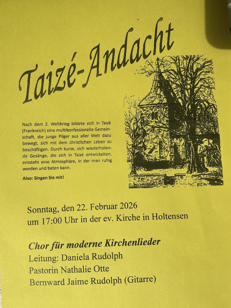 Seit der Gründung des Chores für moderne Kirchenlieder gestalten wir auch Andachten, bei denen Gesänge aus Taizé gemeinsam mit der Gemeinde gesungen werden.Wir als Chormitglieder sitzen dann…