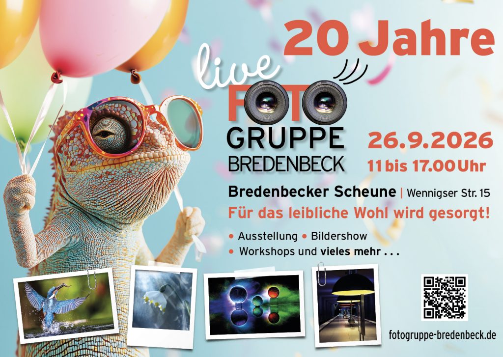 Es geht los! Wir wollen feiern! SAVE THE DATE: 26.9.2026 Bredenbecker Scheune 20 Jahre Fotogruppe Bredenbeck