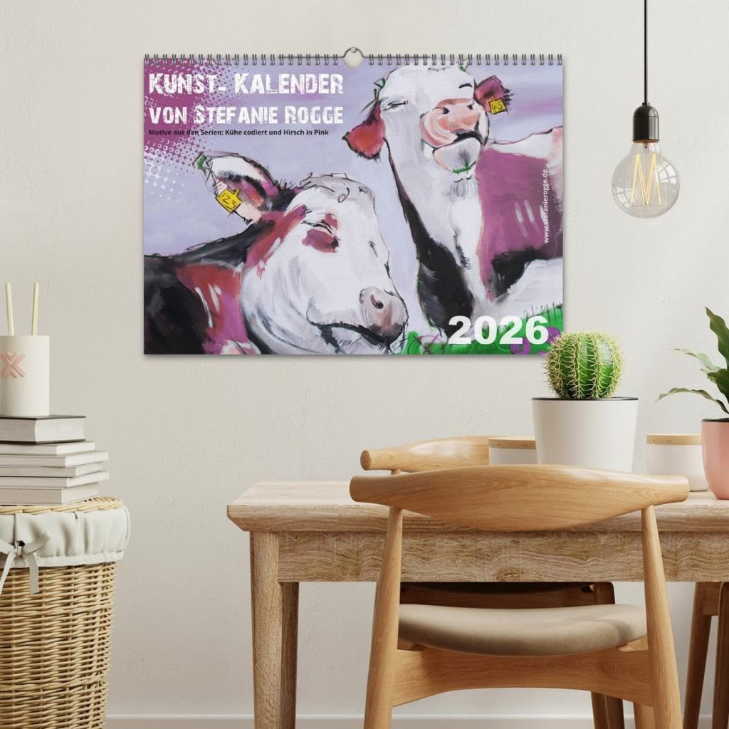 Expressive Malerei – Steilküsten - KUNST KALENDER 2026 Kuhkalender – Kühe codiert und Hirsch in Pink